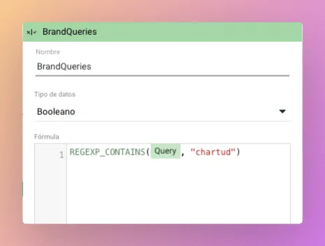 Debe ser de tipo «booleano» por lo que primero vamos a crear un botón para queries de marca y otro para las que no lo son.